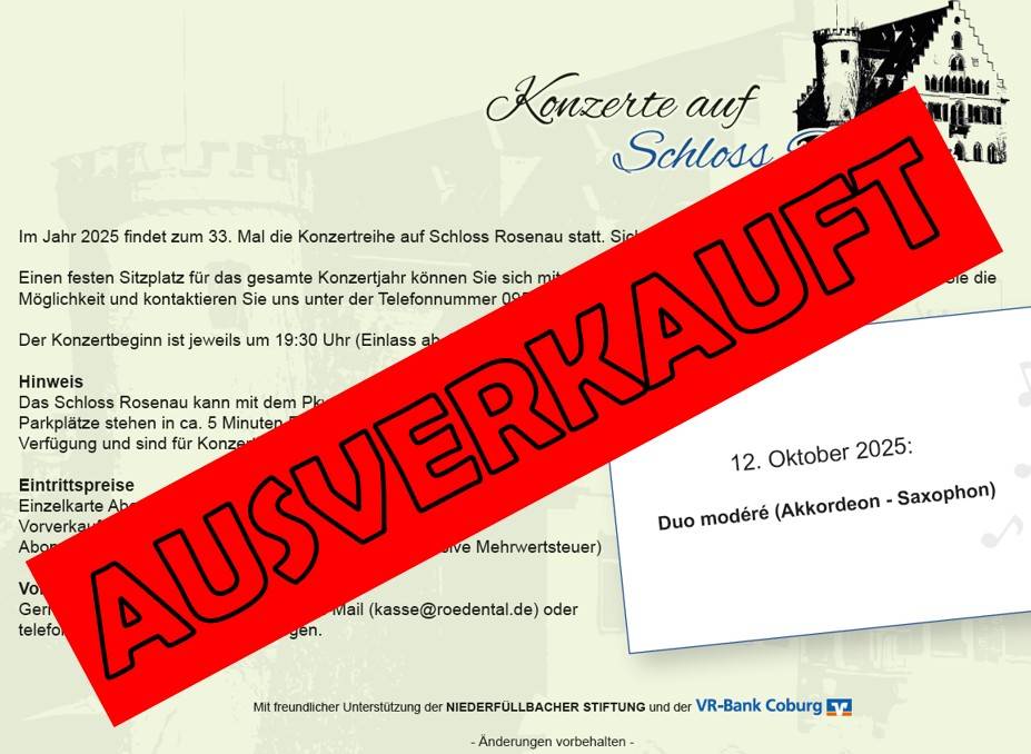 Das Konzert auf Schloss Rosenau am 12. Oktober 2025 mit dem Duo modéré ist AUSVERKAUFT!