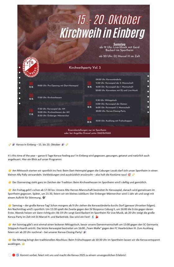 🍻🎉 Kerwa in Einberg – 15. bis 20. Oktober 🎉🍻