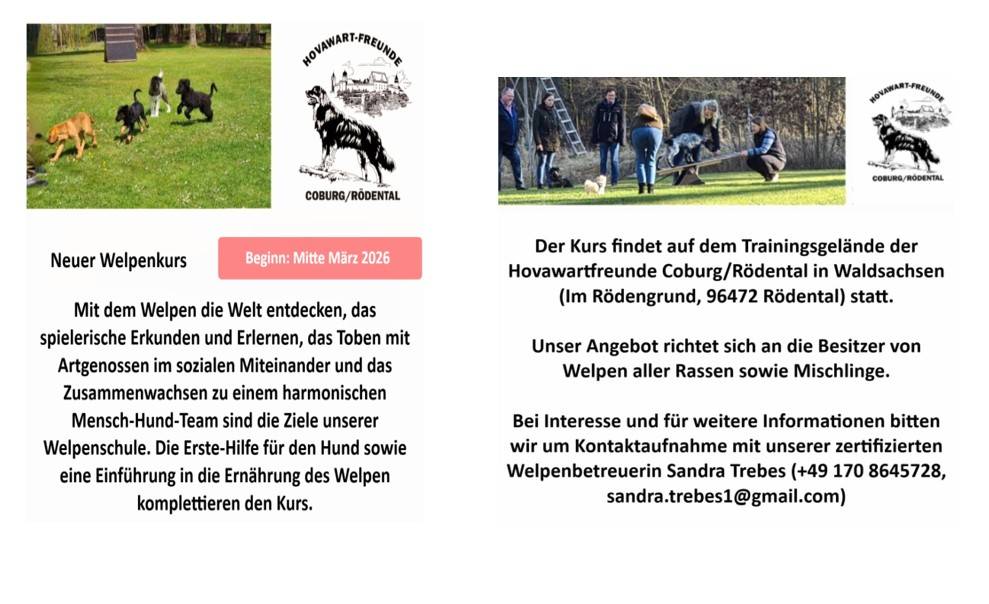 Neuer Welpenkurs startet im März für alle Rassen bzw. Mischlinge bei den Hovifreunden in Waldsachsen