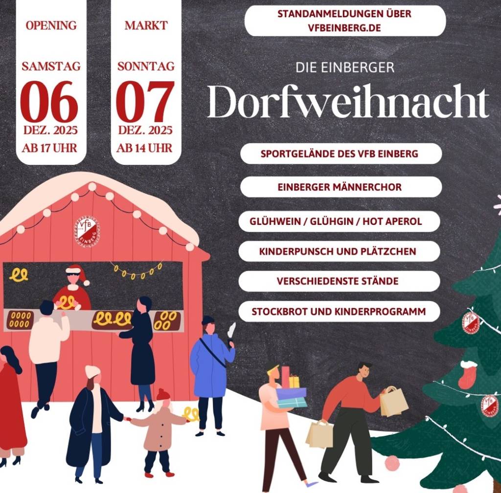 Neben vielen Leckereien 🍰 🥔, Feuertonnen 🔥 und zahlreichen Verkaufsständen wird diesmal auch der Einberger Männerchor 🎤zusammen mit den anwesenden Kindern für einen kurzweiligen und fröhlichen Nachmittag sorgen 🎅🎁✨💖☃️
