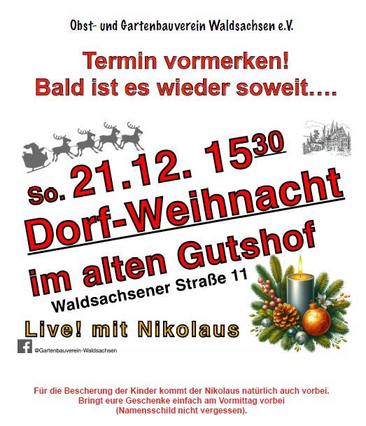 Am Sonntag, den 07.12.25 findet ab 14 Uhr die eigentliche Dorfweihnacht im gewohnten Rahmen statt.