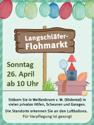 Der Heimat- und Gartenbauverein Weißenbrunn vorm Wald lädt herzlich zum Langschläfer-Flohmarkt am 26. April ab 10.00 Uhr ein