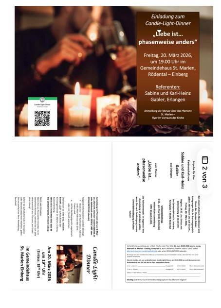 Herzliche Einladung zum Candlelightdinner in St. Marien. Anmeldeformular in der Kirche und auf der Homepage www.kirche-einberg.de