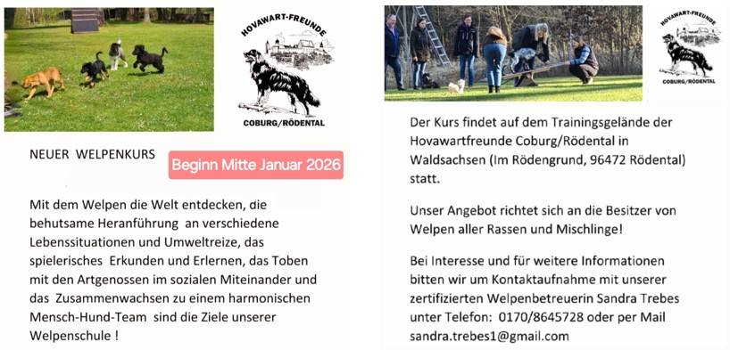Die Hovawartfreunde Coburg/Rödental bieten einen neuen Welpenkurs an - Beginn Mitte Januar 2026