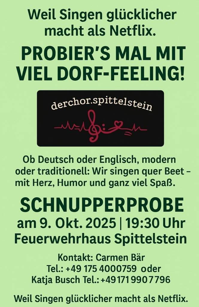 derchor.spittelstein freut sich über interessierte Singbegeisterte in fröhlicher Runde