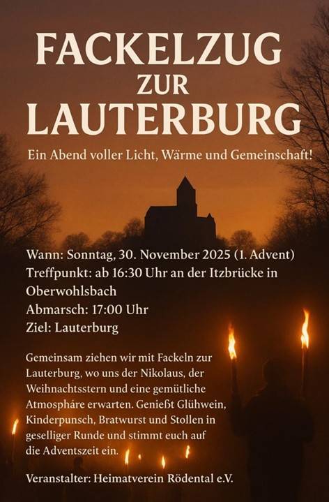 Von weihnachtlichen Weisen einer Gruppe des Musikvereins begleitet, bei Glühwein, Gebäck, Bratwürsten und mehr wird um 18.00 Uhr der Weihnachtsstern entzündet und der Nikolaus kommt. Kinder können ihre Laternen vom Martinsumzug mitbringen, Fackeln sind vorhanden.
