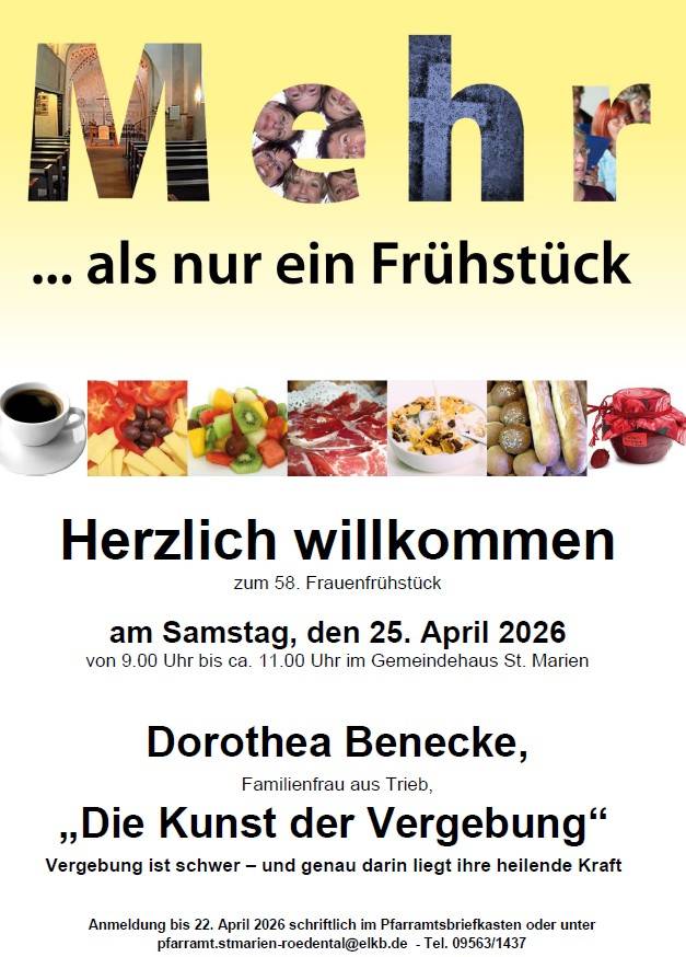 Herzliche Einladung zum 58. Frauenfrühstück in St. Marien, Einberg am 25. April 2026